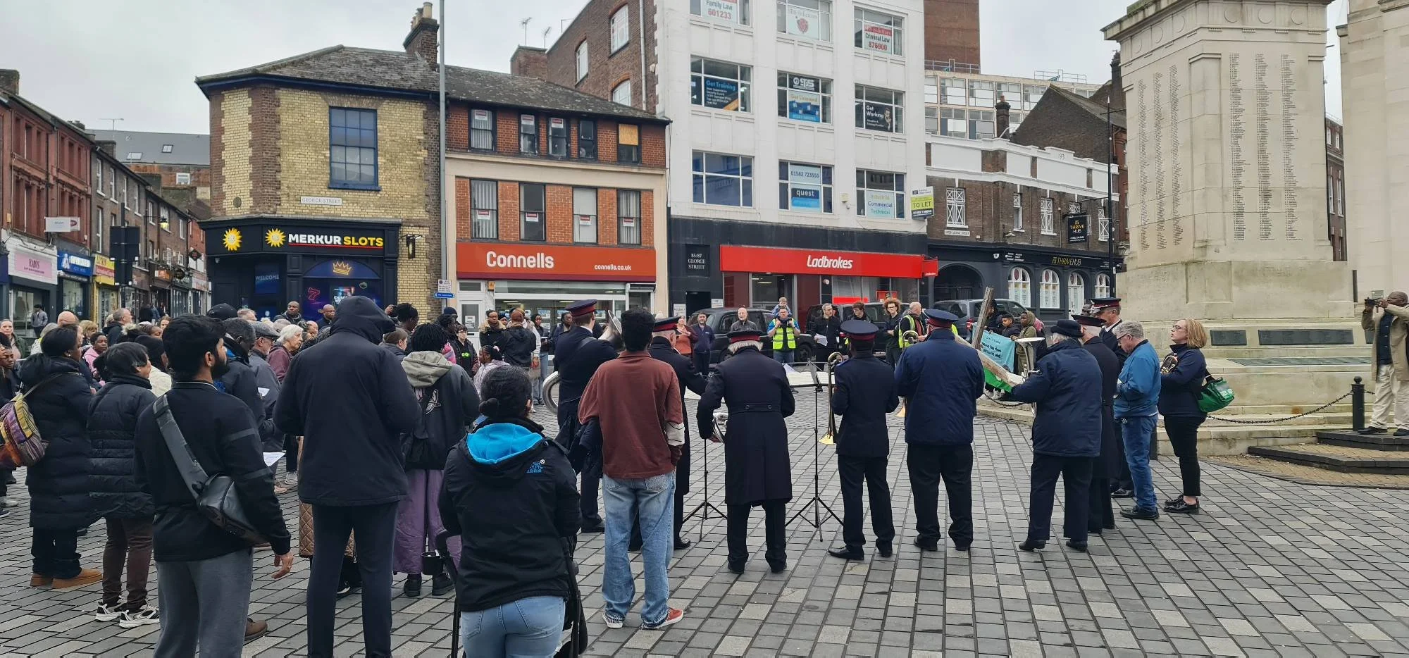 People also stopped outside the Town Hall for short prayers and reflections led by Luton Salvation Army