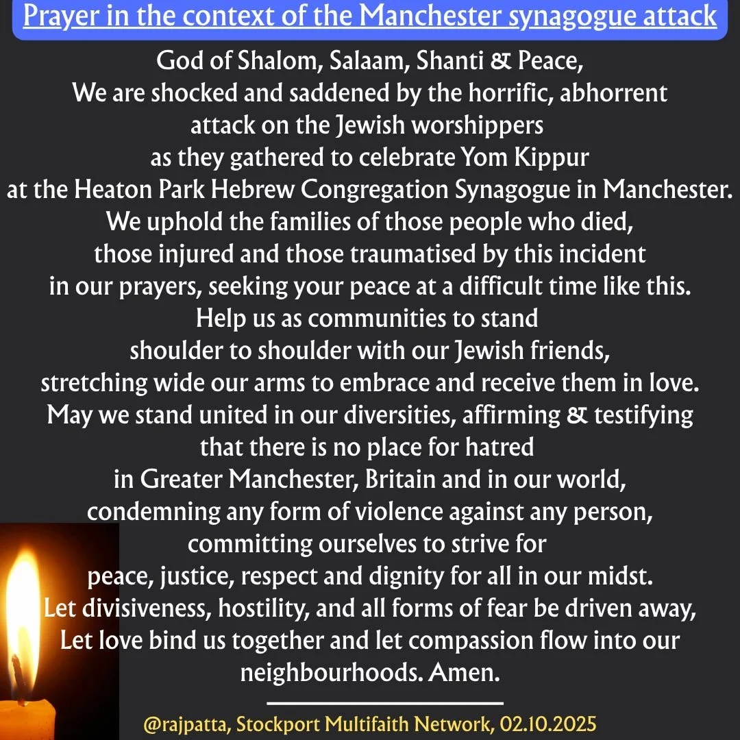 Following the rise in antisemitism and especially the horrific attack on a Manchester Synagogue on 2nd Oct’25, and along with ever-increasing anti-Muslim hostility including an arson attack on Peacehaven Mosque in East Sussex on Saturday 4th Oct’25, the Together Coalition called for a national moment of solidarity on 9th Oct’25. This was worked on with Bishop Toby Howarth and with the support of the Archbishop of York.