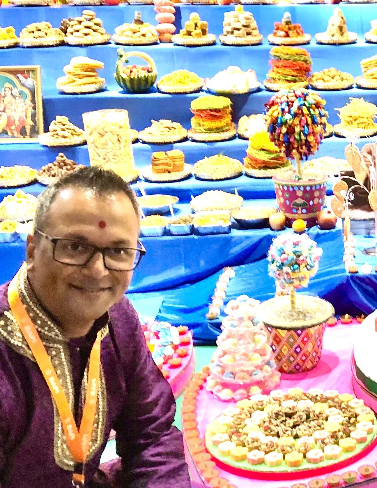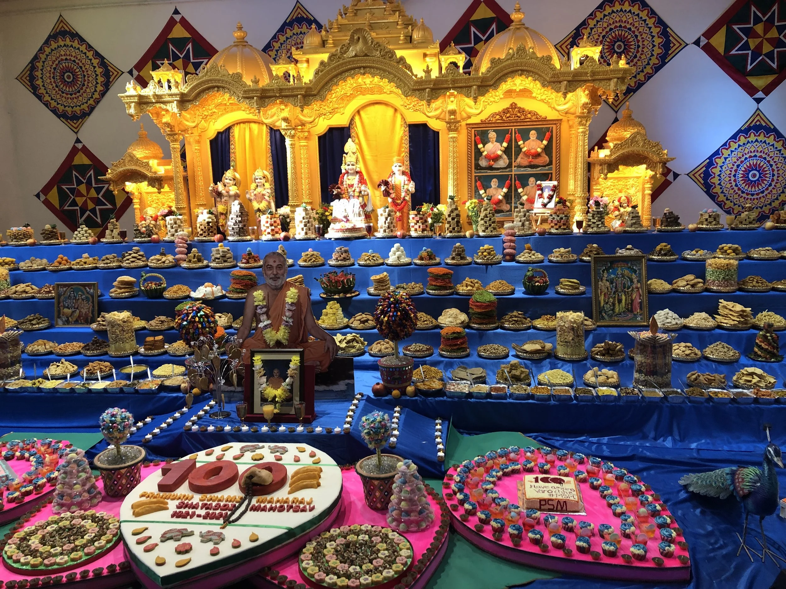 At BAPS Swami Narayan Hindu Temple Luton, the vast array of elaborate dishes presented for God’s blessings.