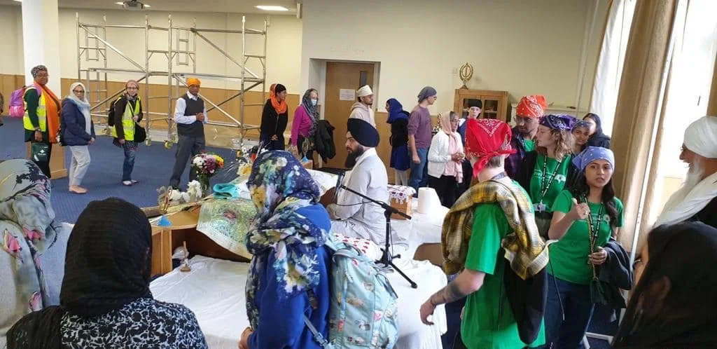 Luton's Annual Peace Walk - People viewing Sikh Scripture Shri Guru Granth Sahib at Guru Nanak Gurudwara Luton