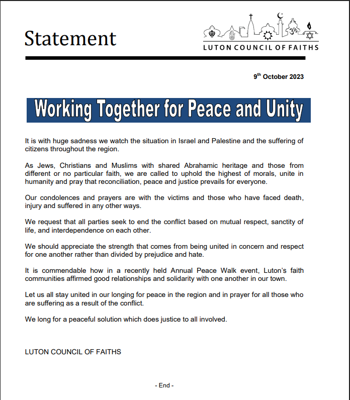 GRASSROOTS Luton joined Quakers in Britain in its prayer for 7 October.