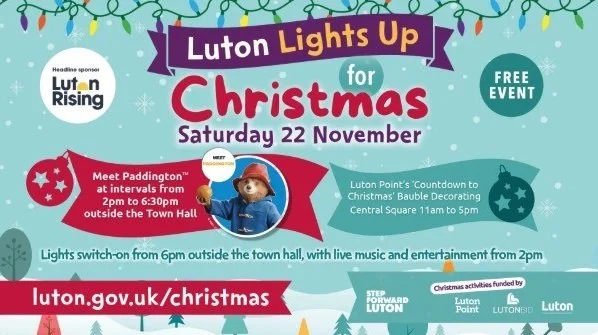 Join us for Luton’s annual light switch-on, sponsored by Luton Rising, with an afternoon packed full of live music and entertainment across the town centre in partnership with Luton BID and Luton Point.